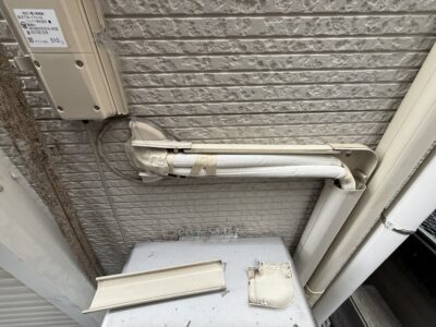 こちらのクーラーカバーも外して外壁を塗ってから塗装して復旧致します。