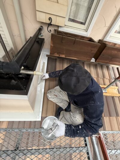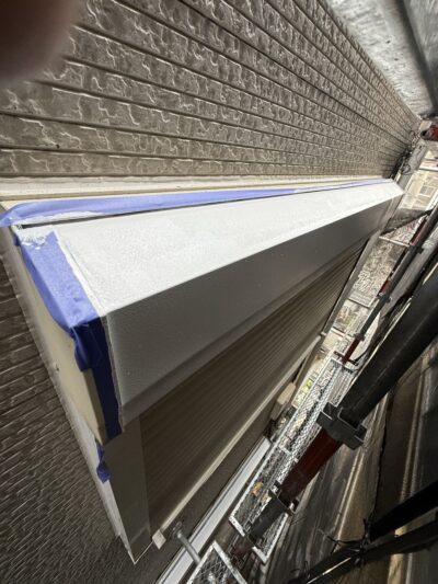 水切りやシャッターボックスなどの付帯部をケレン後、サビ止めを塗ります。