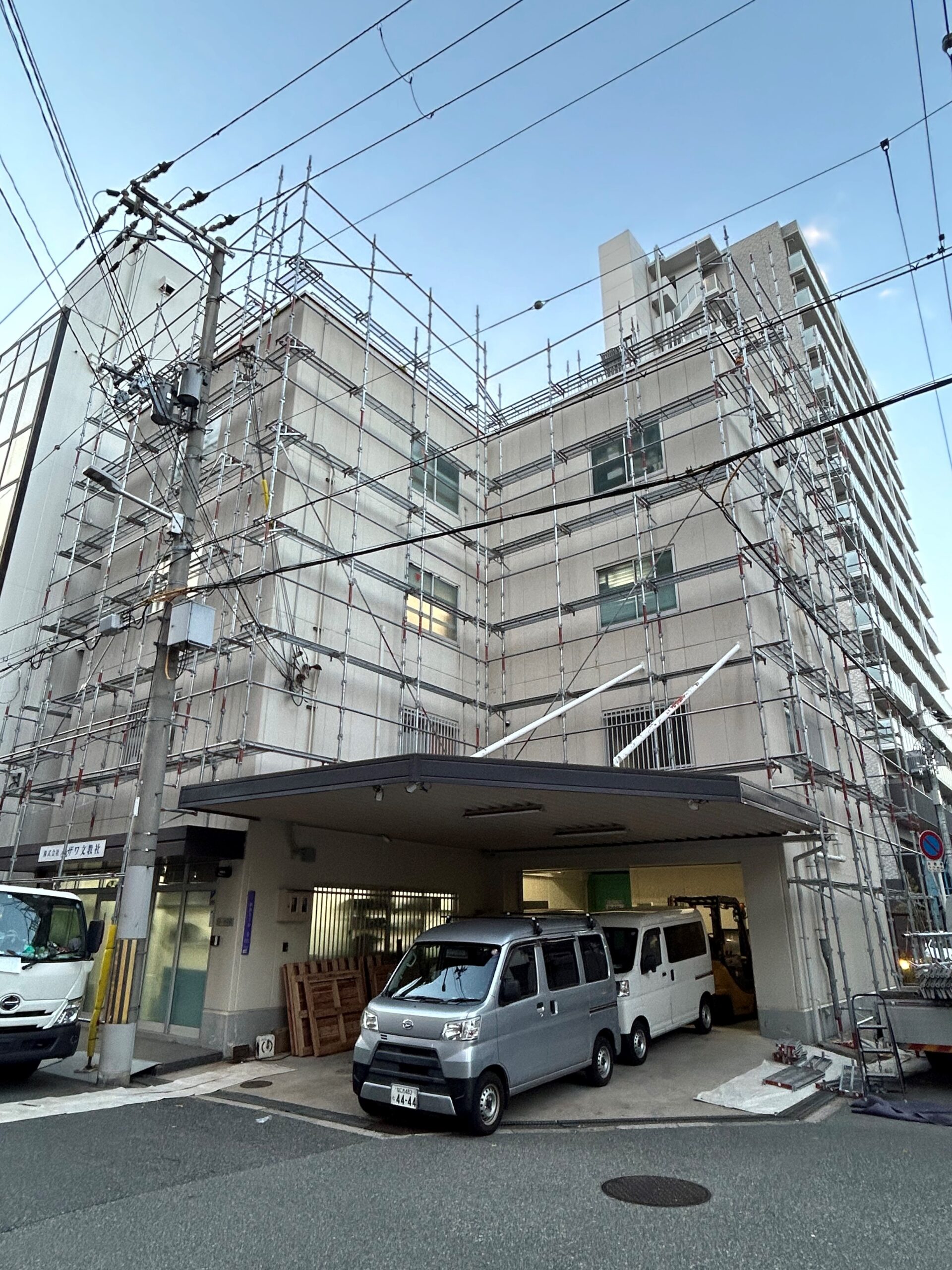 大阪市福島区で塗り替え工事の為の足場組みが着工致しました。