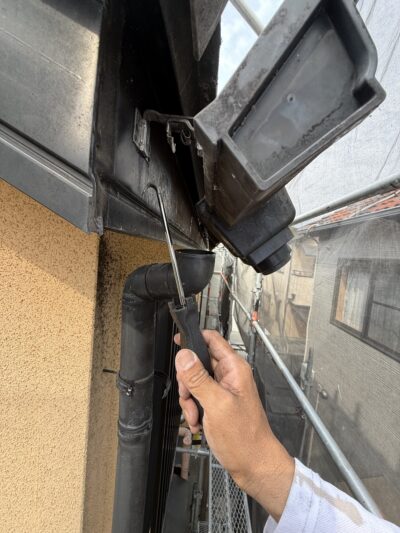 弊社では破風塗装ある場合はが、軒樋(横樋)を外す様に決めました。